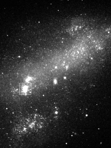 Observationer af galakser som NGC 2366 kan hjælpe astronomerne til bedre at forstå, hvorfor lyssvage irregulære galakser af og til har en sådan brandstormsagtig stjernedannelsesaktivitet. En mulighed er, at den gas, som strømmer omkring galaksen, pga. af rotationen skaber en stanglignende struktur, hvor de lettere gasser hober sig op og dermed former en gigantisk sky ved enderne af "stangen". Den sort-hvide optagelse til venstre af den irregulære galakse NGC 2366 er lavet den 7. februar 1996 med det fransk/-canadiske (CFHT) 3,6-meter teleskop på Mauna Kea på Hawaii. Den hvide ramme viser feltet for Rumteleskopets optagelse.