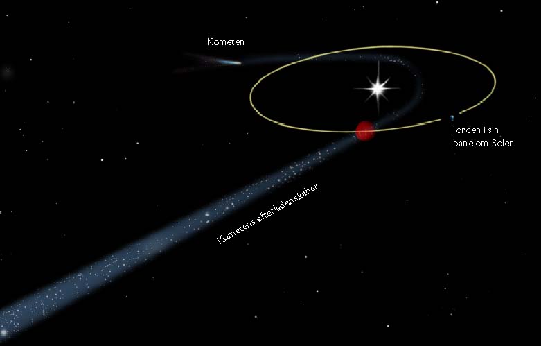 Der, hvor en kometbane skærer Jordens baneplan (ekliptika), vil Jorden hvert år ved samme tid trænge igennem kometens efterladenskaber, som selv er i bevægelse i en retning bestemt af kometens oprindelige bevægelse.