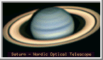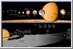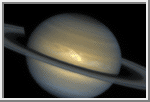 Saturn is the sixth planet from the Sun and is the second largest in the solar system with an equatorial diameter of 119,300 kilometers (74,130 miles). Much of what is known about the planet is due to the Voyager explorations in 1980-81. Saturn is visibly flattened at the poles, a result of the very fast rotation of the planet on its axis. Its day is 10 hours, 39 minutes long, and it takes 29.5 Earth years to revolve about the Sun. The atmosphere is primarily composed of hydrogen with small amounts of helium and methane. Saturn is the only planet less dense than water (about 30 percent less). In the unlikely event that a large enough ocean could be found, Saturn would float in it. Saturn's hazy yellow hue is marked by broad atmospheric banding similar to, but fainter than, that found on Jupiter.