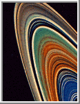 Saturn's ring system makes the planet one of the most beautiful objects in the solar system. The rings are split into a number of different parts, which include the bright A and B rings and a fainter C ring. The ring system has various gaps. The most notable gap is the Cassini [kah-SEE-nee] Division, which separates the A and B rings. Giovanni Cassini discovered this division in 1675. The Encke [EN-kee] Division, which splits the A Ring, is named after Johann Encke, who discovered it in 1837. Space probes have shown that the main rings are really made up of a large number of narrow ringlets. The origin of the rings is obscure. It is thought that the rings may have been formed from larger moons that were shattered by impacts of comets and meteoroids. The ring composition is not known for certain, but the rings do show a significant amount of water. They may be composed of icebergs and/or snowballs from a few centimeters to a few meters in size. Much of the elaborate structure of some of the rings is due to the gravitational effects of nearby satellites. This phenomenon is demonstrated by the relationship between the F-ring and two small moons that shepherd the ring material.