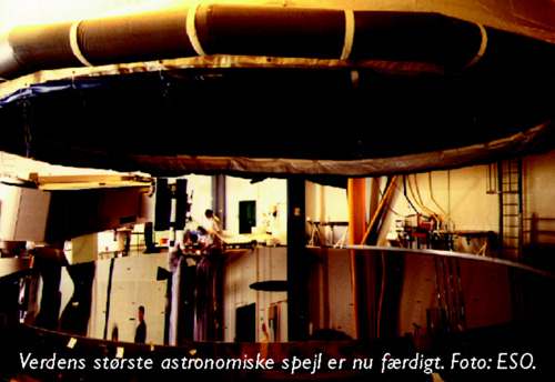Konstruktionsarbejdet på Paranalbjerget skrider fint frem, og tilbage i Europa står nu samtidig det første af VLT'ens fire helt ens teleskopspejle - hver på 8,2 meter i diameter - klar og færdigt til overdragelse fra slibefabrikken lige uden for Paris. Richard West fortæller, at det allerede nu kan fastslås, at spejlets nøjagtighed mere end lever op til de i forvejen meget strenge kvalitetskrav.